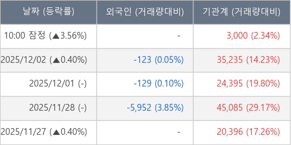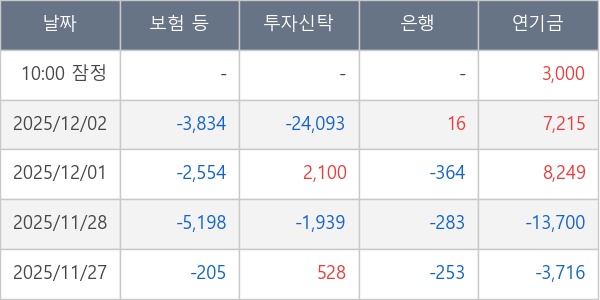 ※ 사모펀드 등 일부 기관의 순매매량은 표시되지 않음