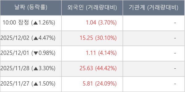 [표] 외국인ㆍ기관 순매매량 (단위 만주)