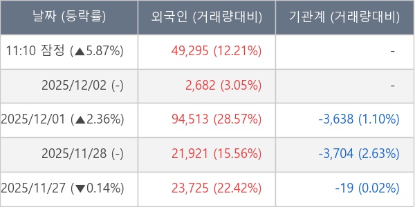 [표] 외국인ㆍ기관 순매매량 (단위 주)
