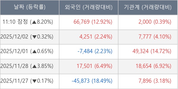 ※ 사모펀드 등 일부 기관의 순매매량은 표시되지 않음