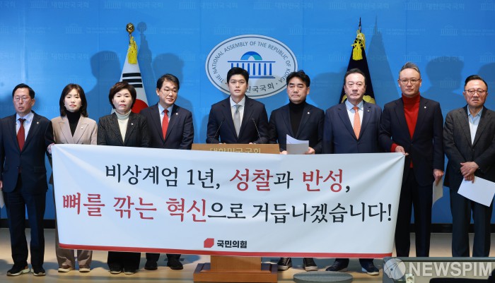 [서울=뉴스핌] 신정인 기자 = 국민의힘 초·재선 의원들은 12·3 비상계엄 1년인 3일 대국민 사과와 함께 윤석열 전 대통령과의 정치적 단절을 선언했다.