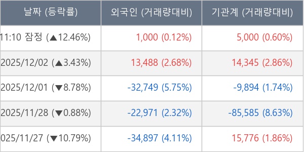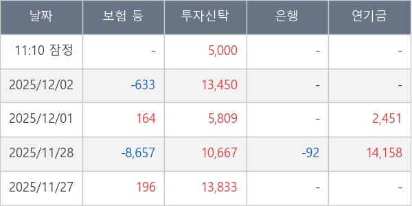 ※ 사모펀드 등 일부 기관의 순매매량은 표시되지 않음