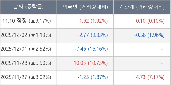 ※ 사모펀드 등 일부 기관의 순매매량은 표시되지 않음