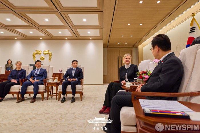 [서울=뉴스핌] 이재명 대통령이 3일 서울 용산구 대통령실에서 커스티 코번트리 국제올림픽위원회(IOC) 위원장을 접견하고 있다. [사진=대통령실] 2025.12.03 photo@newspim.com