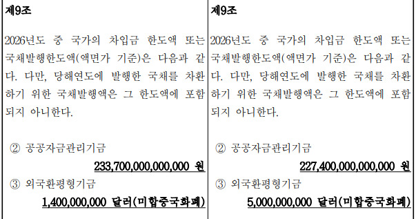 | 2026년 외화 표시 외국환평형기금채권(외평채) 발행 한도 및 국고채 발행 규모. [자료=2026년 예산안] 2025.12.04 plum@newspim.com |