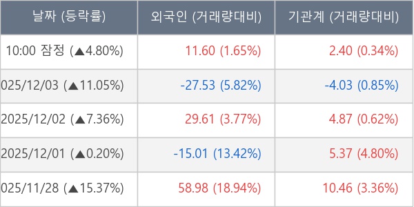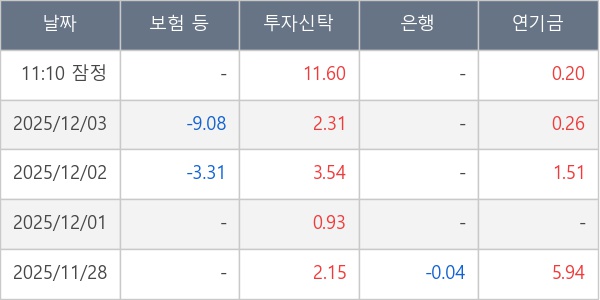 ※ 사모펀드 등 일부 기관의 순매매량은 표시되지 않음