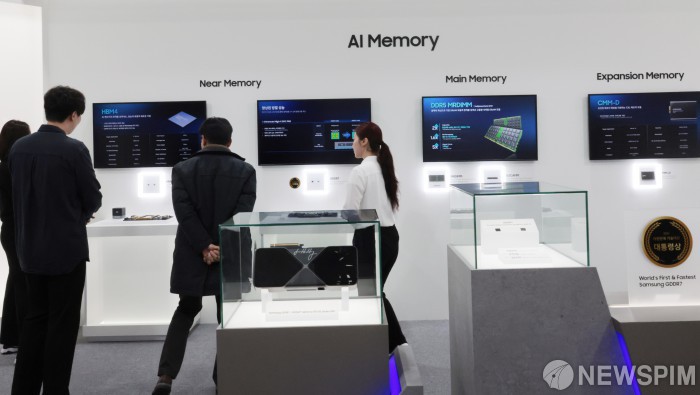 [서울=뉴스핌] 이길동 기자 =4일 서울 강남구 코엑스에서 열린 2025 코리아 테크 페스티벌 삼성전자 부스에서 방문객들이 12나노미터(㎚)급 40Gbps 24Gb GDDR7 D램이 탑재된 엔디비아의 GPU RTX 5090이 전시품을 관람하고 있다.2025.12.04 gdlee@newspim.com