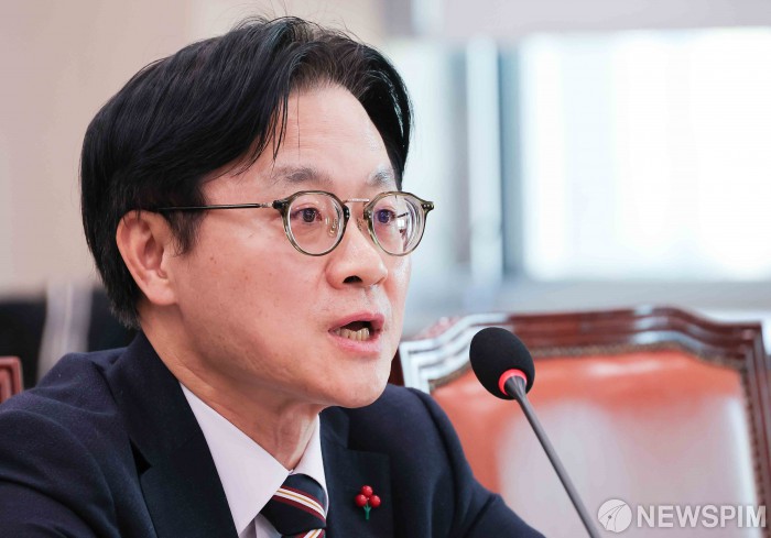 [서울=뉴스핌] 윤창빈 기자 = 김정관 산업통상부 장관이 4일 서울 여의도 국회에서 열린산업통상자원중소벤처기업위원회 전체회의에서 의원 질문에 답변하고 있다. 2025.12.04 pangbin@newspim.com