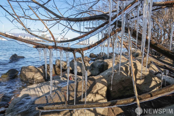 [서울=뉴스핌] 윤창빈 기자 = 연일 강추위가 지속되고 있는 5일 서울 여의도 한강변에 고드름이 얼어있다. 2025.12.05 pangbin@newspim.com