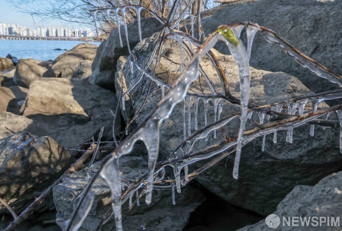 [서울=뉴스핌] 윤창빈 기자 = 연일 강추위가 지속되고 있는 5일 서울 여의도 한강변에 고드름이 얼어있다. 2025.12.05 pangbin@newspim.com