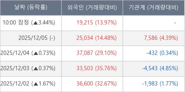 [표] 외국인ㆍ기관 순매매량 (단위 주)