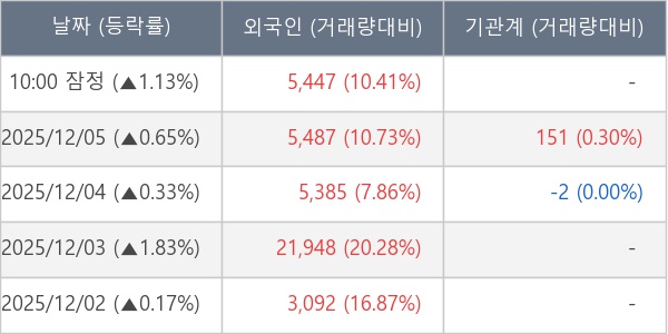 [표] 외국인ㆍ기관 순매매량 (단위 주)
