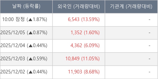 [표] 외국인ㆍ기관 순매매량 (단위 주)