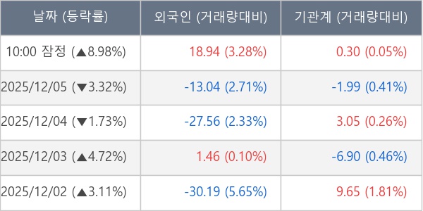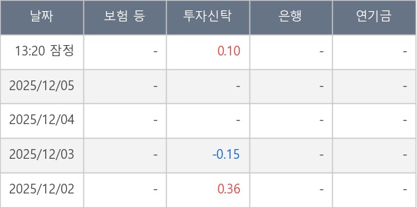 [표] 주요 기관별 순매매량 (단위 만주)