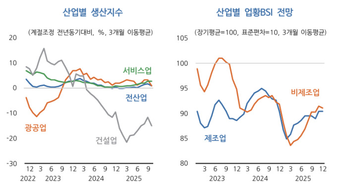 다만 건설업 부진 장기화와 통상환경 불확실성 등은 개선 속도를 제약할 가능성이 있는 위험 요인으로 지목했다. 특히 반도체 가격 상승에 따른 수출 개선이 실물 회복으로 이어지려면 시간이 필요하고, 건설 투자 조정이 길어질수록 경기 반등의 탄력도 약화될 수 있다는 우려가 나온다.