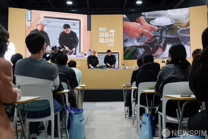 [서울=뉴스핌] 류기찬 기자 = 신동민 멘야미코 오너셰프가 8일 오후 서울 서초구 aT센터에서 열린 ‘2025 배민파트너페스타’에서 대방어 해체쇼를 하고 있다. 2025.12.08 ryuchan0925@newspim.com