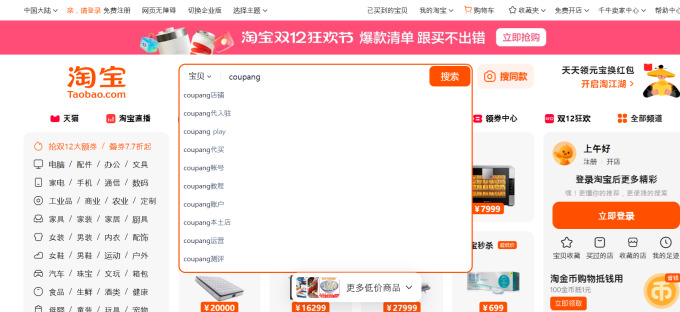 | 이동통신사 3사에 이어 국내 이커머스 1위 쿠팡의 개인정보 유출사고가 발생한 가운데 국내에서 유출된 개인정보들이 해외에서 거래되는 정황이 포착돼 시민들의 불안감이 커지고 있다. 사진은 타오바오에서 '쿠팡'이라는 검색어를 입력하자 연관 검색어에 '쿠팡 계정'이 뜨는 모습. [사진= 타오바오 캡쳐] |