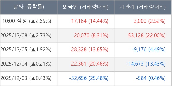 ※ 사모펀드 등 일부 기관의 순매매량은 표시되지 않음
