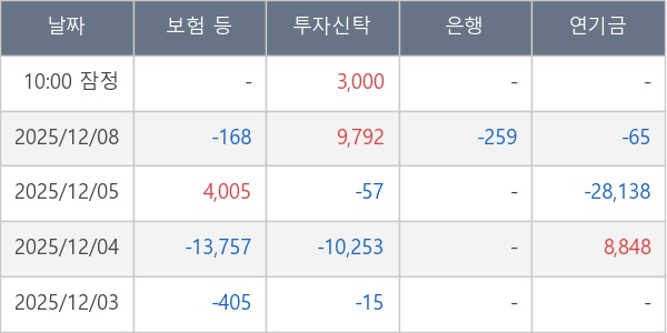 [표] 주요 기관별 순매매량 (단위 주)