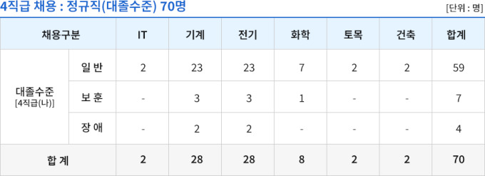 채용 분야는 ▲IT ▲기계 ▲전기 ▲화학 ▲토목 ▲건축 등 총 6개 직군이며 최종 합격자는 정규직으로 입사하게 된다.