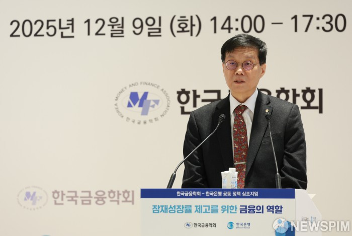 [서울=뉴스핌] 이창용 한국은행 총재가 9일 오후 서울 중구 한국은행에서 열린 한국은행-한국금융학회 공동정책 심포지엄에서 축사를 하고 있다. [사진=한국은행] 2025.12.09 photo@newspim.com