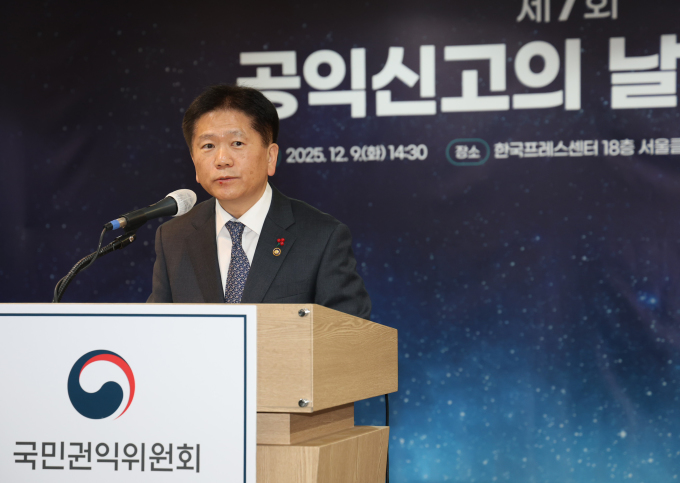 | 이명순 국민권익위원회 부위원장이 지난 9일 서울 중구 프레스센터에서 열린 제7회 공익신고의 날 기념식에 참석해 기념사를 하고 있다. [사진=국민권익위원회] 2025.12.10 sheep@newspim.com |