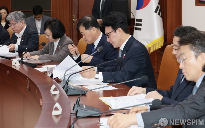 [서울=뉴스핌] 이길동 기자 = 김민석 국무총리가 10일 서울 종로구 정부서울청사에서 열린 국가정책조정회의에서 회의 자료를 살펴보고 있다. 2025.12.10 gdlee@newspim.com