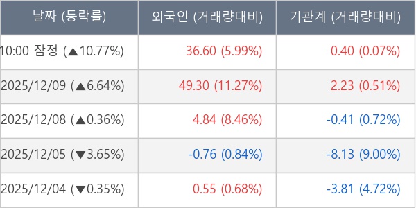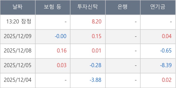 ※ 사모펀드 등 일부 기관의 순매매량은 표시되지 않음