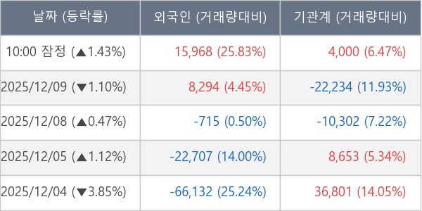 ※ 사모펀드 등 일부 기관의 순매매량은 표시되지 않음