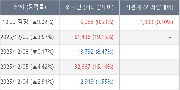 [장중수급포착] 네오오토, 외국인/기관 동시 순매수… 주가 +9.02%