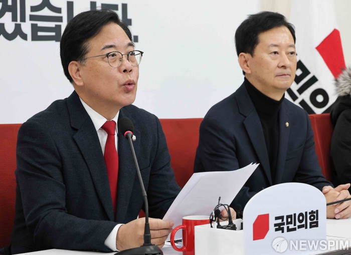 [서울=뉴스핌] 윤창빈 기자 = 송언석 국민의힘 원내대표가 10일 오전 서울 여의도 국회에서 현안 관련 기자간담회를 하고 있다. 2025.12.10 pangbin@newspim.com