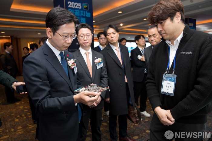 [서울=뉴스핌] 배경훈 부총리 겸 과학기술정보통신부 장관이 10일 서울 중구 롯데호텔에서 열린 '2025 인공지능반도체 미래기술 컨퍼런스'에 참석해 기업 부스를 둘러보고 있다. [사진=과학기술정보통신부] 2025.12.10 photo@newspim.com