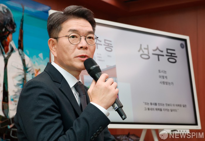 [서울=뉴스핌] 류기찬 기자 = 정원오 성동구청장이 10일 오후 서울 성동구 펍지 성수에서 열린 기자간담회에서 취재진의 질문에 답하고 있다. 2025.12.10 ryuchan0925@newspim.com