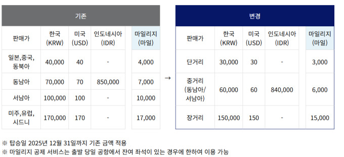 혜택 구성도 바뀐다. 스마티움에서 제공되던 비즈니스 라운지 이용 등 상위 서비스는 사라졌다. 다만, 그동안 없던 우선탑승(골드회원 대상)과 수하물 우선 수취 서비스가 추가됐다. 비즈니스급 서비스에서 이코노미 업그레이드 패키지로 성격을 명확히 바꾸는 셈이다.