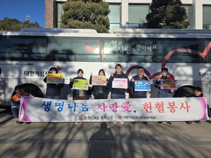 [동해=뉴스핌] 이형섭 기자 = 쌍용C&E 동해공장이 올해 마지막 '생명나눔 사랑愛 헌혈 캠페인'을 실시하며 2025년 사회공헌 활동을 마무리했다고 11일 밝혔다.