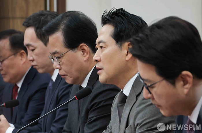 [서울=뉴스핌] 윤창빈 기자 = 장동혁 국민의힘 대표가 11일 서울 여의도 국회에서 열린최고위원회의에서 모두발언을 하고 있다. 2025.12.11 pangbin@newspim.com