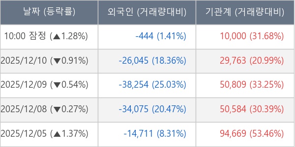 ※ 사모펀드 등 일부 기관의 순매매량은 표시되지 않음