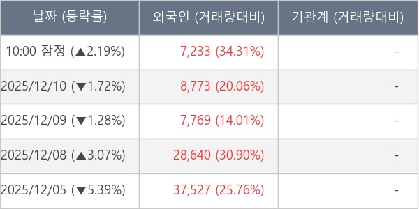 [장중수급포착] TPC, 외국인 14일 연속 순매수행진... 주가 +2.19%
