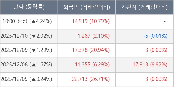 [표] 외국인ㆍ기관 순매매량 (단위 주)