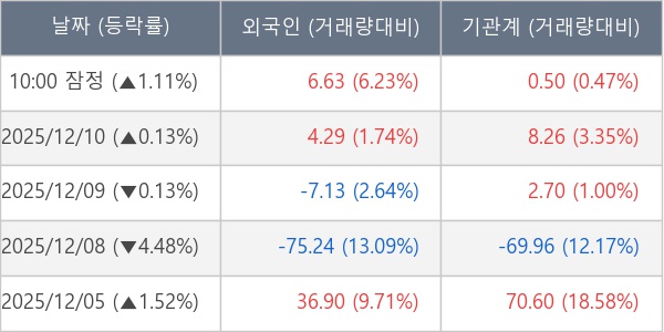 ※ 사모펀드 등 일부 기관의 순매매량은 표시되지 않음
