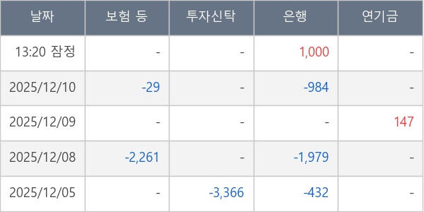 ※ 사모펀드 등 일부 기관의 순매매량은 표시되지 않음