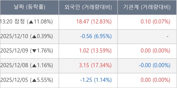 [장중수급포착] 텔레칩스, 외국인/기관 동시 순매수… 주가 +11.08%