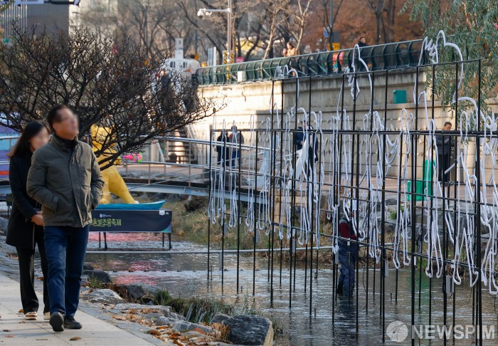 [서울=뉴스핌] 류기찬 기자 = 서울빛초롱축제 개막을 하루 앞둔 11일 오후 서울 중구 청계천 일대에서 관계자들이 조형물 설치 작업을 진행하고 있다. 2025.12.11 ryuchan0925@newspim.com