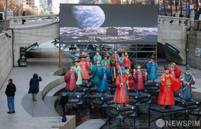 [서울=뉴스핌] 류기찬 기자 = 서울빛초롱축제 개막을 하루 앞둔 11일 오후 서울 중구 청계천 일대에 조형물이 설치되어 있다. 2025.12.11 ryuchan0925@newspim.com