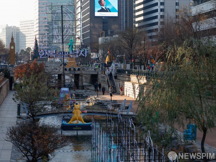 [서울=뉴스핌] 류기찬 기자 = 서울빛초롱축제 개막을 하루 앞둔 11일 오후 서울 중구 청계천 일대에 조형물이 설치되어 있다. 2025.12.11 ryuchan0925@newspim.com