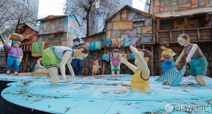 [서울=뉴스핌] 류기찬 기자 = 서울빛초롱축제 개막을 하루 앞둔 11일 오후 서울 중구 청계천 일대에 조형물이 설치되어 있다. 2025.12.11 ryuchan0925@newspim.com