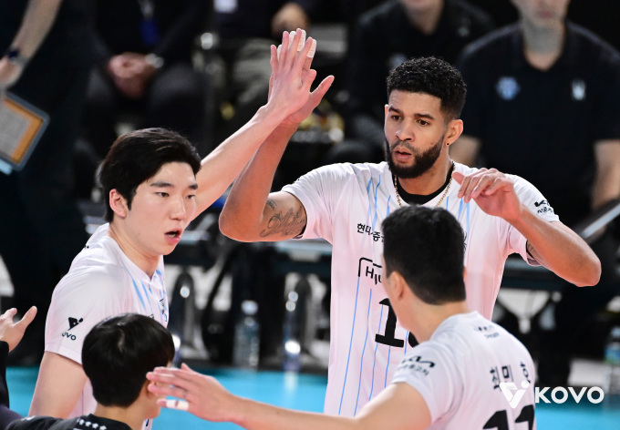 | [서울=뉴스핌] 장환수 스포츠전문기자= 레오(가운데), 허수봉(왼쪽), 최민호 등 현대캐피탈 선수들이 11일 삼성화재와 대전 경기에서 서로 격려하고 있다. [사진=KOVO] 2025.12.11 zangpabo@newspim.com |
