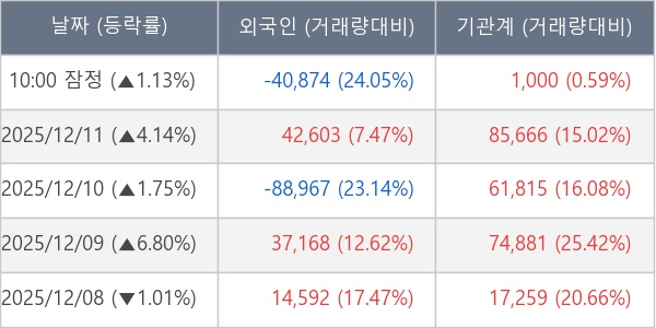 ※ 사모펀드 등 일부 기관의 순매매량은 표시되지 않음