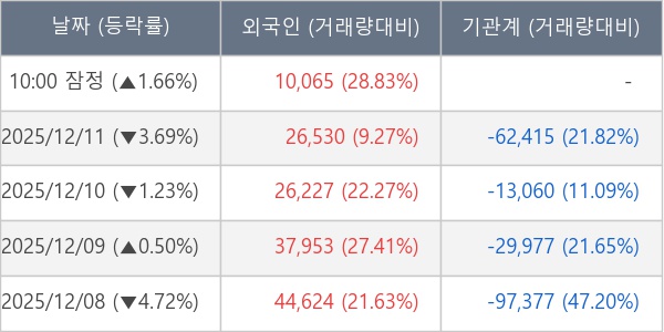 [표] 외국인ㆍ기관 순매매량 (단위 주)