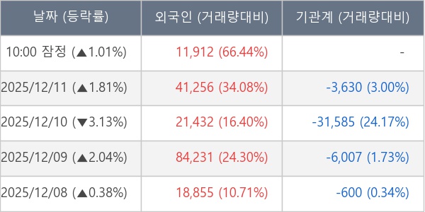 [표] 외국인ㆍ기관 순매매량 (단위 주)